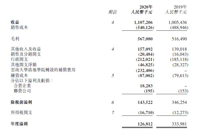 淨利大跌的原因,出在“雲南大學滇池學院轉設的補償費用”一項上。該項開支為2.32億元,去年並無此項。這項開支在金額上,已接近民生教育全年淨利潤額的2倍。若刨除該項支出的影響,其2020年除税前溢利將達3.76億元,同比2019年增長8.6%——在此背景下,民生教育2020年的經營狀況雖談不上亮眼,但起碼還算平穩。