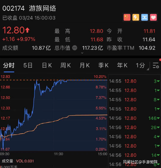 另外,3月24日,遊族網絡的股票繼續漲停。