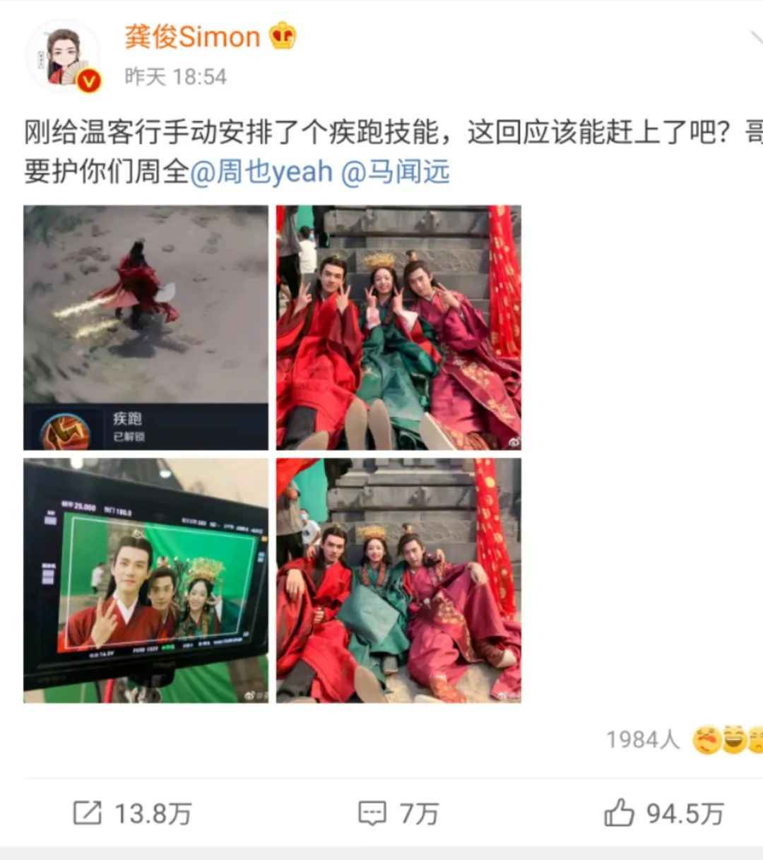不過,碼完整場輿論的娛sir認為:匆匆從兩位主演的兩條微博以及所謂的採訪中的蛛絲馬跡,就判定拆CP,甚至認定張哲瀚、龔俊開始爭資源、關係不好等,倒也不必。插播一下,張哲瀚、龔俊明天還要合體錄製綜藝《快樂大本營》。(參與過張哲瀚、龔俊現場節目錄制、採訪的娛sir表示,演員們關係真不錯。)