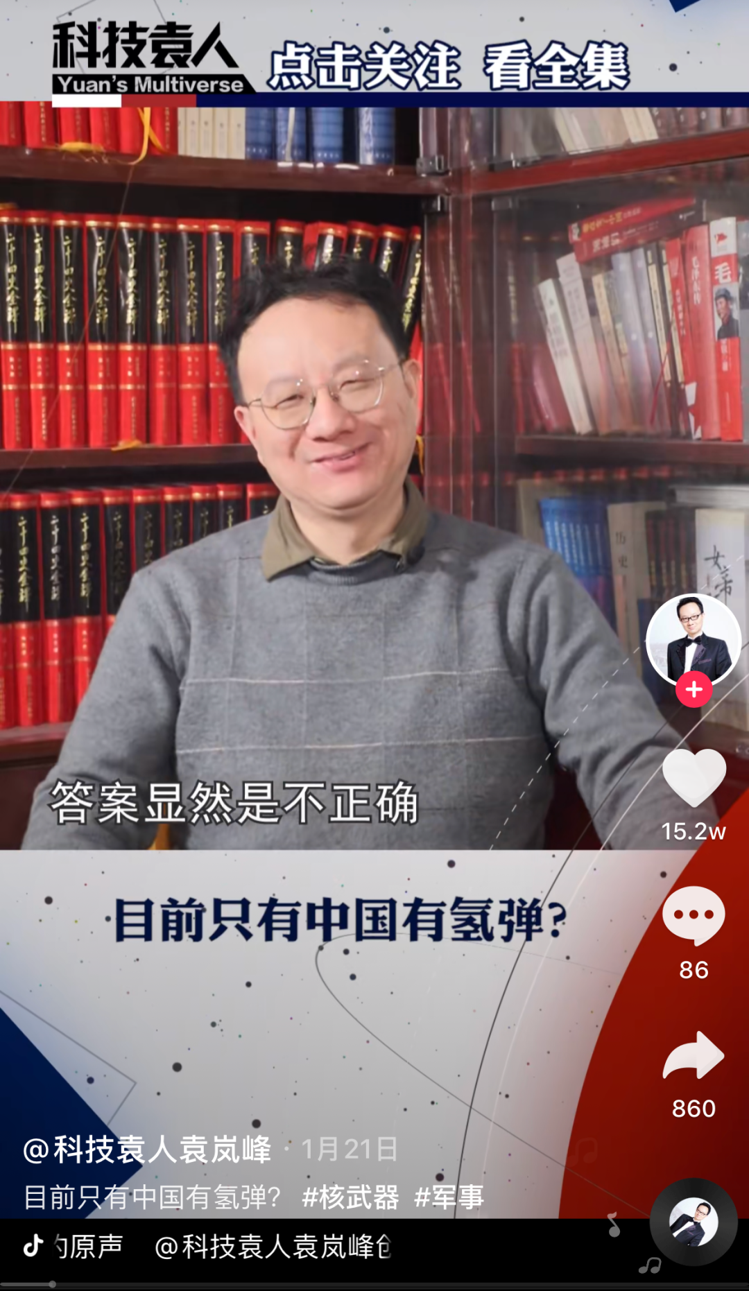 最近有朋友問我,“目前只有中國保有#氫彈# ”這個説法正確嗎?