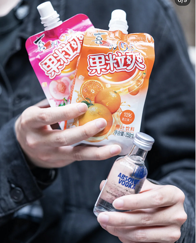 有些人覺得不夠刺激,想要更獵奇一點的味道,他們去跳出方程式,去試了基酒+元氣森林白桃味、拿鐵咖啡、牛奶等等。總之,隨便排列組合就完事了。