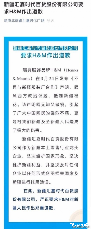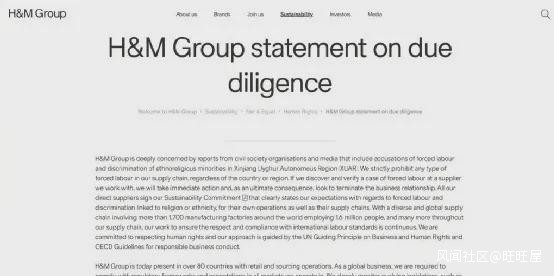 前天下午,瑞典服裝品牌H&M官網上的一份聲明,開始在微博上廣泛傳播。