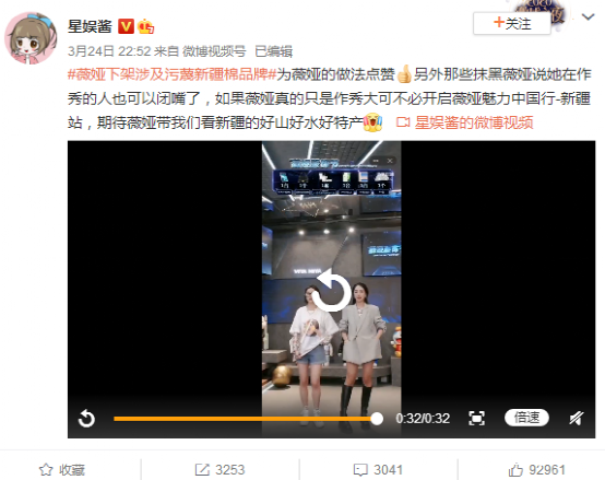 不僅是明星和電商巨頭,就連知名的帶貨主播薇婭,也下架了涉及污衊新疆棉花的品牌。