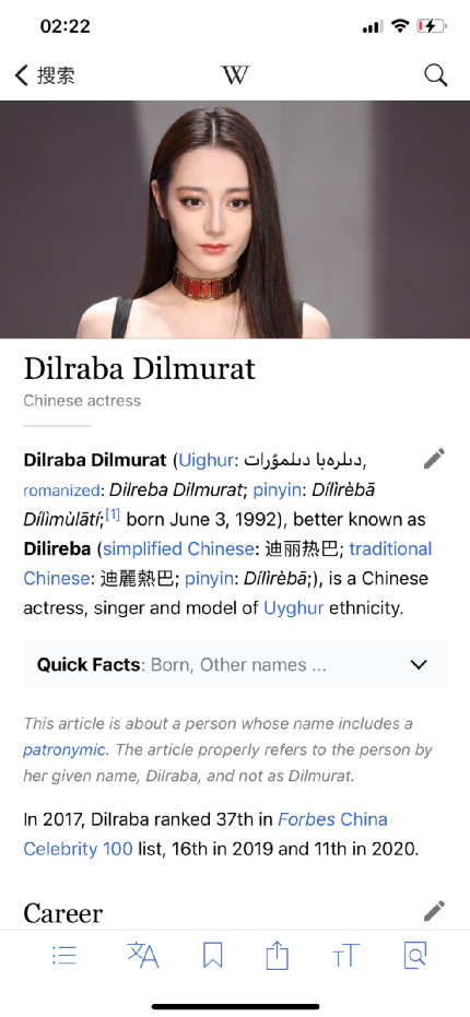 15、最後,被瘋狂追捧的國家偶像——維吾爾族女孩迪麗熱巴。她簡直無所不在。在中國,有許多的維吾爾族明星。為什麼國人非常喜歡他們?因為他們異域風情的外貌。説到種族滅絕,你可以想象納粹德國的頭號明星是一個有着長相標準的猶太人麼?歡迎來到真實的中國。