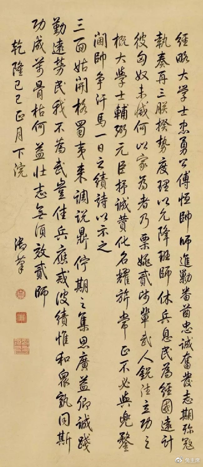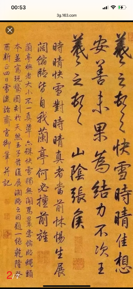 4、這裏,我附上乾隆皇帝的書法。他是中國一個偉大的滿族統治者。你可以看到,在那個時候,他們已經在文化上基本“漢化”了。滿族的書寫語言當然還在,但很多時也是用作針對漢人的某種秘密代碼。