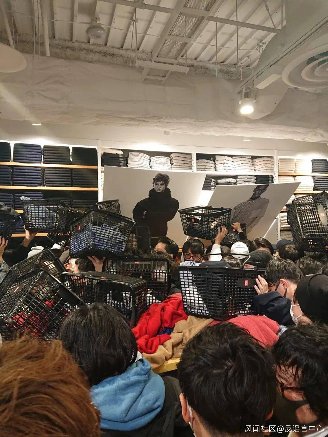 2020年11月13日,日本知名品牌優衣庫與設計師Jil Sander合作推出的聯名款衣服發售,吸引來日本民眾瘋搶。觀察者網在當時的報道中提到,位於名古屋的一家優衣庫門店直接被“擠爆”:店內水泄不通,沒有人保持社交距離,滿地碎玻璃,連模特身上的衣服也被扒去。