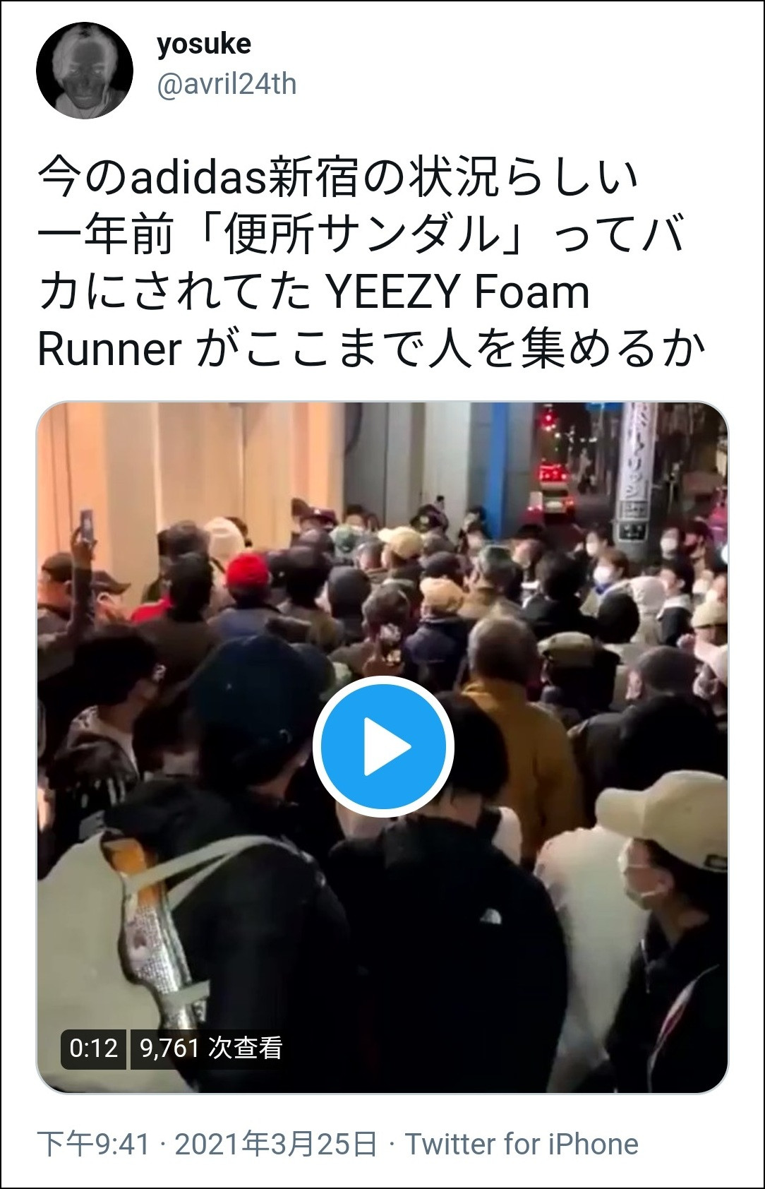 之後,@avril24th 便上傳了一段視頻,展現新宿阿迪達斯門店前的實況。