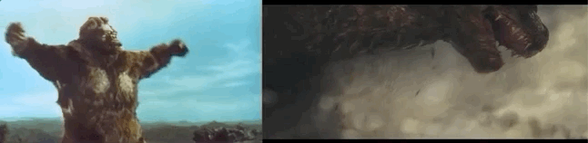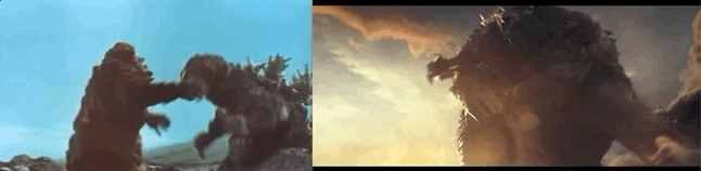 左1962版《金剛大戰哥斯拉》,右《哥斯拉大戰金剛》
