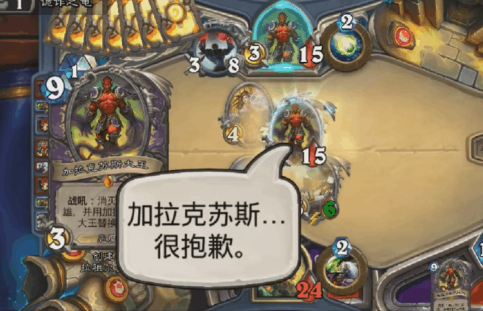 更多當年玩家們津津樂道的梗,都有着濃重的時代因素。庖丁解牛,兩個火球,這是當時法師職業乃至整個爐石缺少解場手段的真實寫照;硬幣跳山嶺,説明那時的玩家——即使是天天打牌的主播——普遍操作水平都相對青澀;旋轉抱歉,則記錄了一批玩家剛剛學會變着花樣嘲諷對手時的簡單快樂。