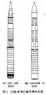 РТ-2ПМ1/2 白楊M是РТ-2ПМ白楊的改型,之所以分成兩個型號,是因為它們的發射方式不同,分別是井下發射型號和車載發射型號,對應的英文是RT-2PM1和M2,國際軍控的代號是PC-12M1/2(SALT代號,英文是RS-12M1/2),北約代號SS-27,綽號鐮刀B,GRAU導彈號:15Ж65(英文是15Zh65)。該彈的研製背景是:蘇聯解體後,俄羅斯繼承的洲際彈道導彈很多生產和組裝被不在俄羅斯,包括白楊導彈雖然總裝和設計在俄羅斯,但是重要的慣導元件是烏克蘭哈爾科夫生產的,為了擺脱這種不利的局面,俄羅斯獨立設計和製造了第一種洲際彈道導彈。因為是改進型這種導彈設計週期很短,1993年開始設計,1997年12月24日就在部隊試裝,1998年12月27日正式服役,用了不到5年,可是它的發展型圓錘用了20年。截止2018年2月8日,俄羅斯部署了60個井基和18個公路機動的白楊M導彈系統。