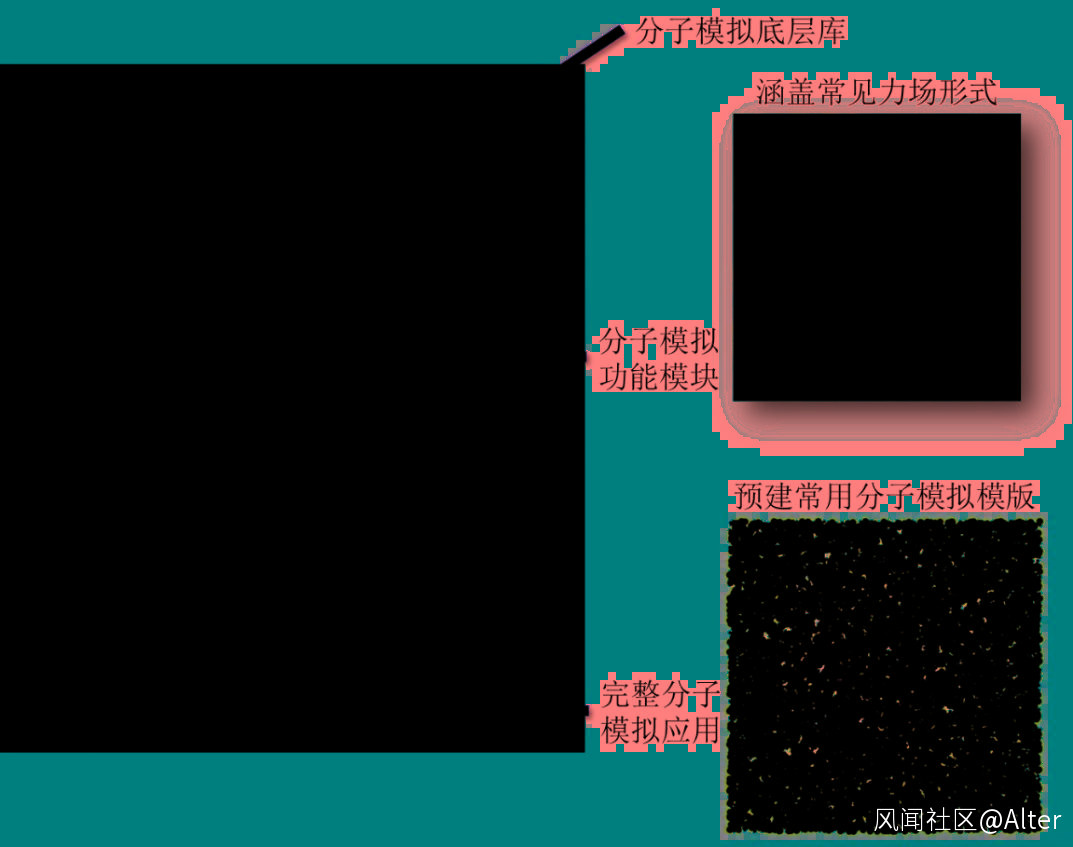1、全模塊化分子模擬。模塊化構建分子模擬算法,易於領域研發人員進行理論和算法的快速實現,併為外部開發人員貢獻子模塊提供友好的開源社區環境。