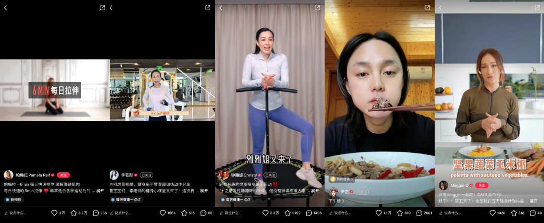 值得一提的是,小紅書對垂類內容的探索講究多元、極致。除“人間AI”帕梅拉外,李若彤、鍾麗緹、尹正、MaggieQ等明星,都曾圍繞不同的切入點,輸出健康生活理念,引領着粉絲、用户變美變自信。