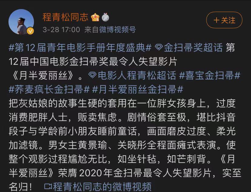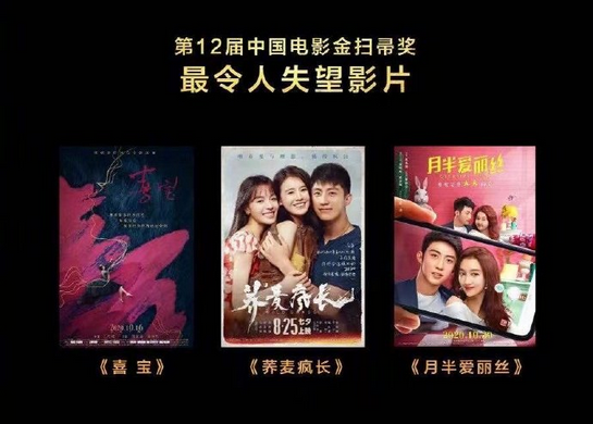 28日,第12屆中國電影金掃帚獎為廣大影迷一一揭曉。