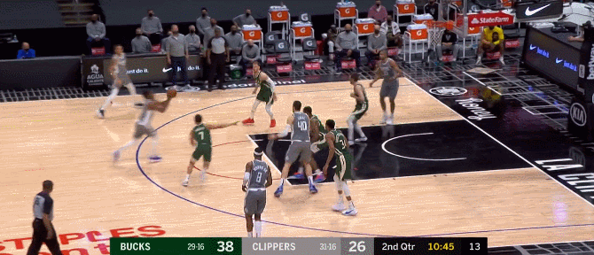 就算如此,快船首發剩下的4名球員都有借單擋掩護幹拔三分的能力,就這麼投大洛,你説雄鹿受得了嗎?