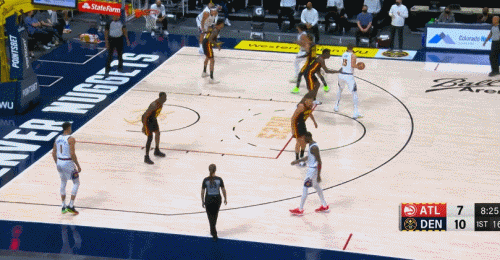 事實上,波特第二節最後階段曾助攻戈登命中了一記底角三分,戈登很快就投桃報李,兩大鋒線不僅在進攻端有效互動,在防守端也是來回切換,戈登頻頻換防到外線,讓堅守籃下的波特得到了更多保護籃板的機會。掘金在這場贏了18個籃板,在增加了側翼高度後,他們在搶板時可以調動的資源更加充裕。