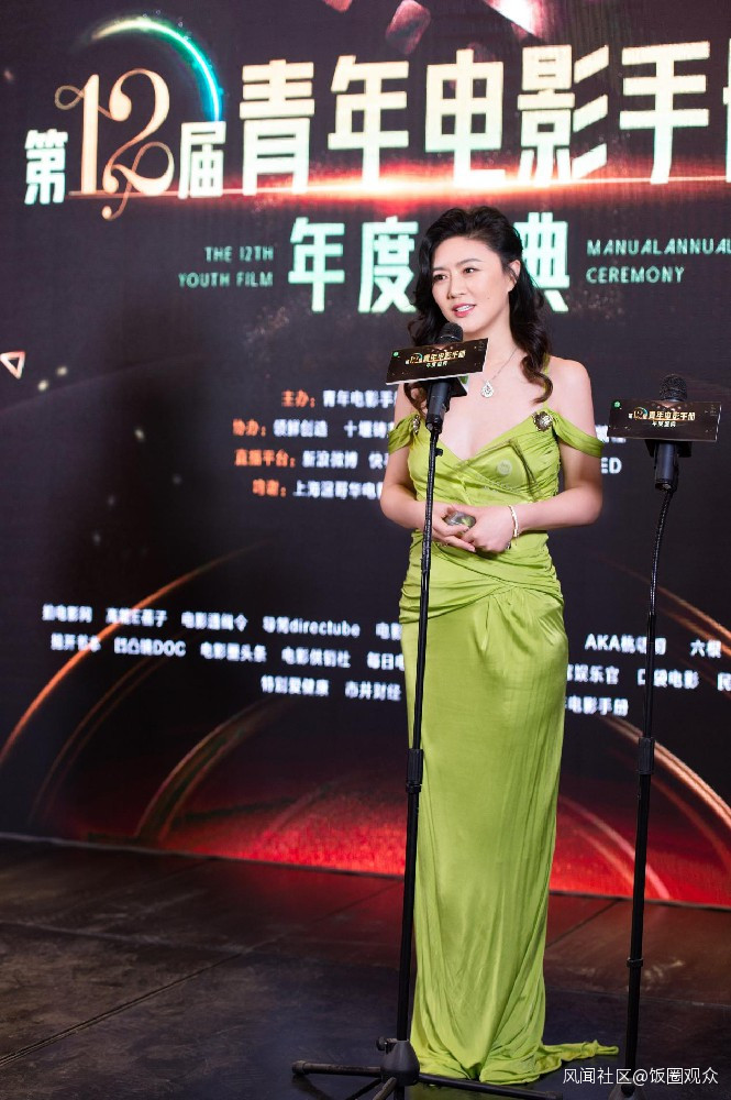 作為青年電影手冊的評委,著名演員、製片人,長春國際電影節影后田海蓉一襲綠衣盛裝出席,代表春意同時代表希冀的造型,自然是高定女王田海蓉精挑細選為青年電影手冊獻上的敬意之一。