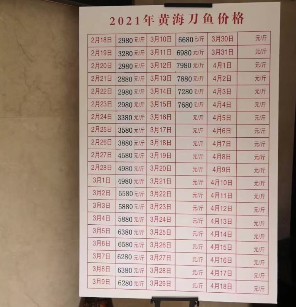 於是就有了文章開頭的圖片,味道接近長江刀魚的黃海刀魚,價格水漲船高,也飆升到了將近萬元一斤的恐怖畫面。