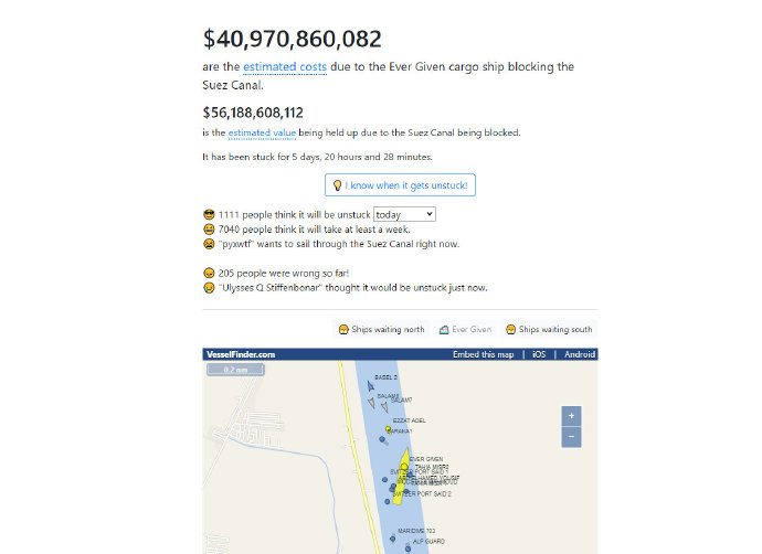 還有朋友製作了一個網站,會實時估算蘇伊士運河堵塞損失的金錢數。