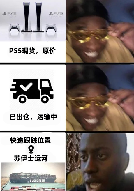 然而就在玩家們瘋狂發揮自己的嘲諷腦洞的時候,據外媒報道,因為“長賜”號堵塞了蘇伊士運河,歐洲的部分玩家將會面臨PS5等主機的延期交貨情況,延期時間可能長達數月。