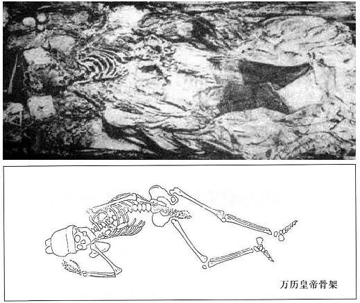 **▲**萬曆皇帝的骨架呈現身體側卧的屈肢葬法