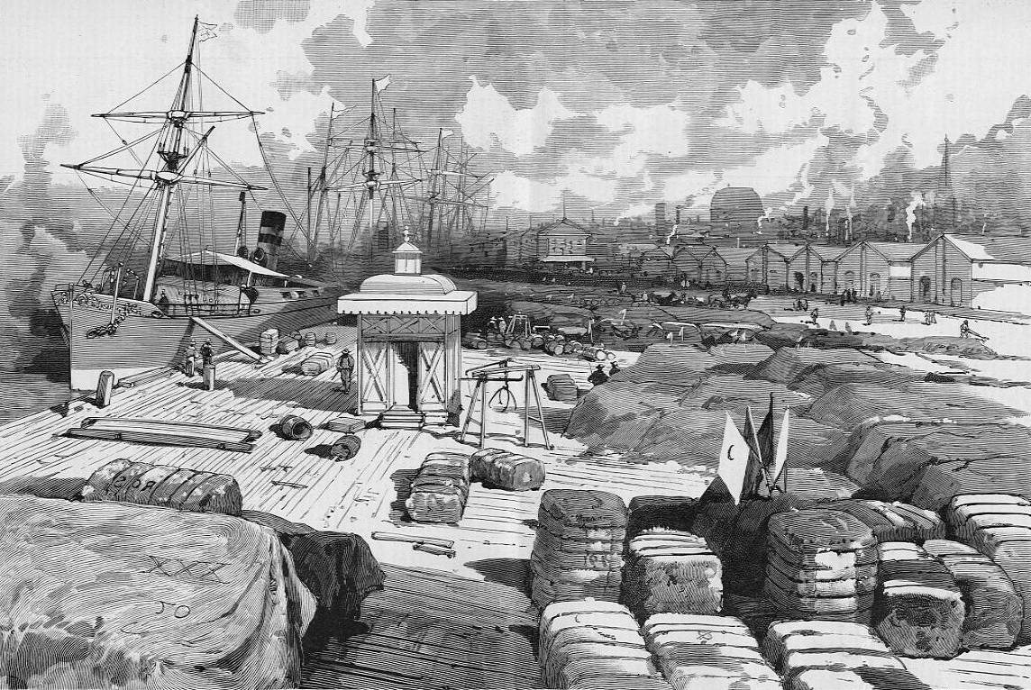 在英國碼頭堆積的外國棉花