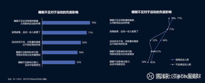 良好的睡眠質量和合理的運動量是相互促進的關係,白皮書的調查結果顯示,超過八成的運動人羣認為睡眠對於運動來説是重要的,因為睡眠可以促進運動後身體功能恢復,集中注意力、使得動作更加敏捷避免受傷,有助於身體燃燒脂肪,促進肌肉增長等;而不足的睡眠則不僅會影響運動熱情,容易使人疲憊,還容易造成運動過程中狀態不佳,訓練量和強度也達不到應有的標準。