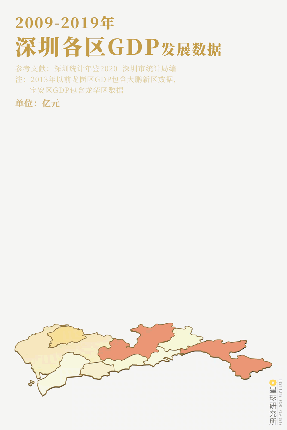 2009-2019年深圳各區GDP發****展數據示意圖 | 製圖@楊寧&陳志浩/星球研究所