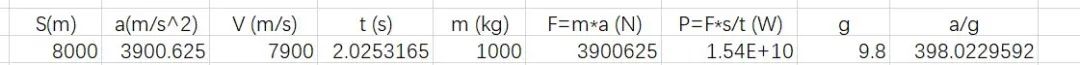 代入第一宇宙速度7.9km/s和軌道長度8km,得到加速度是驚人的: