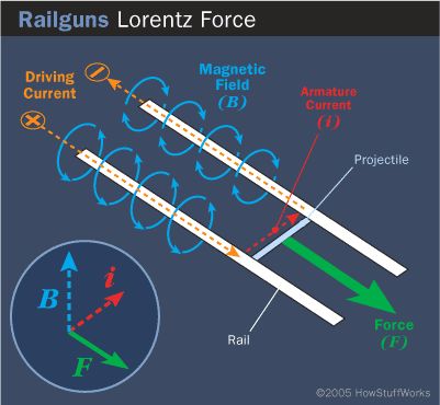 電磁軌道發射依靠的洛倫茲力,F = i * L * B;