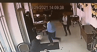 然而這對白人夫妻卻不樂意了,自説自話把桌子搬進了室內,這下不僅擋住了路,還打破了社交距離規定。