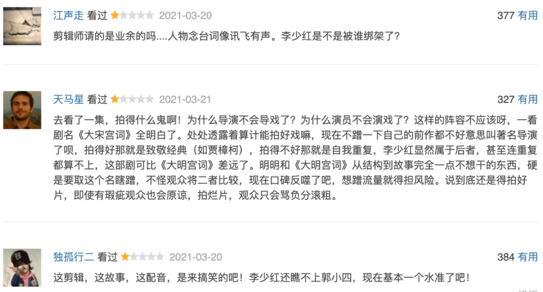 一個個花式毒評,讓李少紅如鯁在喉、如芒在背、如坐針氈,更把她的野心戳成了簍子。