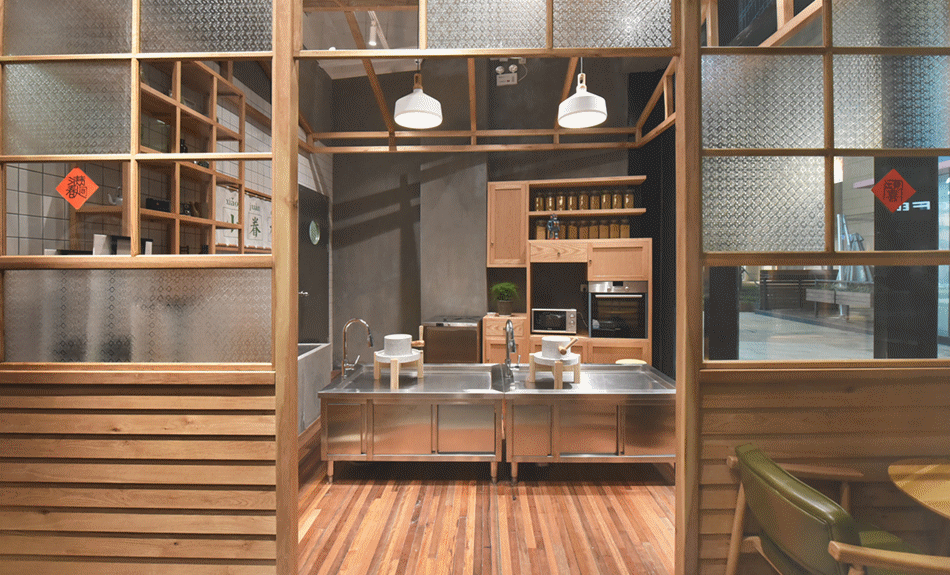 店裏會有一塊區域叫小眷村,專門讓孩子們體驗磨豆漿。