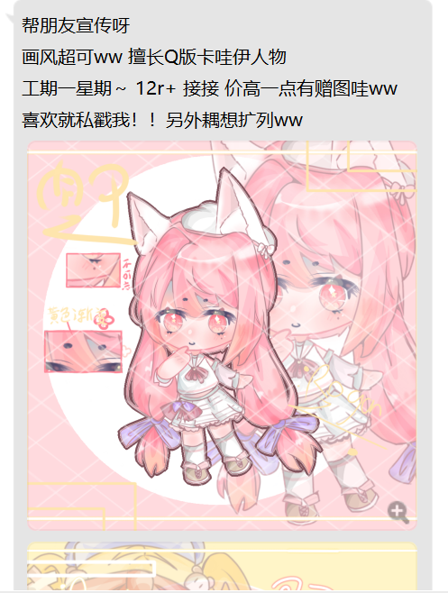 拿到設子後,設主就可以拿這個人設再去找別的畫師約頭像、插畫,有的還會約服裝設、換一套衣服。
