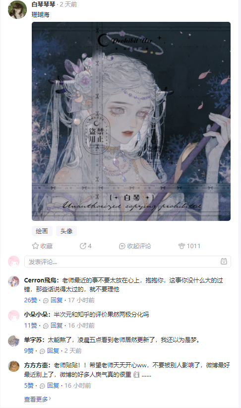 本次芙芙事件中,白琴作為業內較為知名的畫師,有大量人為她洗地。