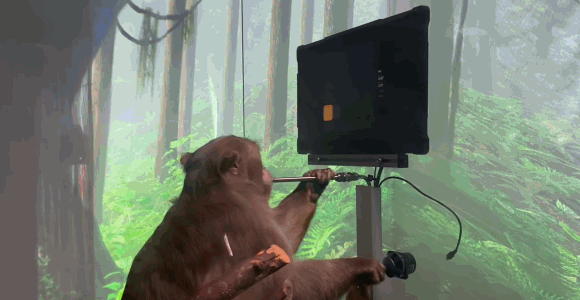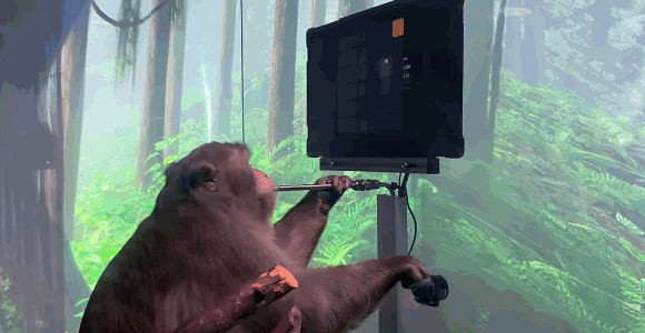 最近,這家公司公佈了一段視頻。在視頻中,一隻小獼猴被安裝腦機接口後,玩起了遊戲。