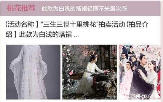 2017年,《三生三世十里桃花》劇組拍賣主角趙又廷、楊冪的“原味劇服”,楊冪白色薄紗仙服的競標價一度衝到5000元,最後以8501元賣出。