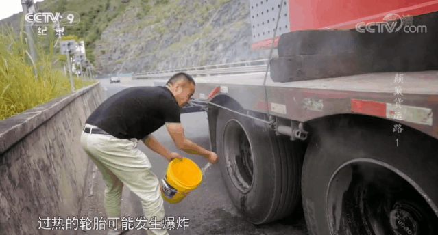 拍攝過程中,記者還坐車上,老楊突然剎不住了,剎車因為一路高温,失靈。