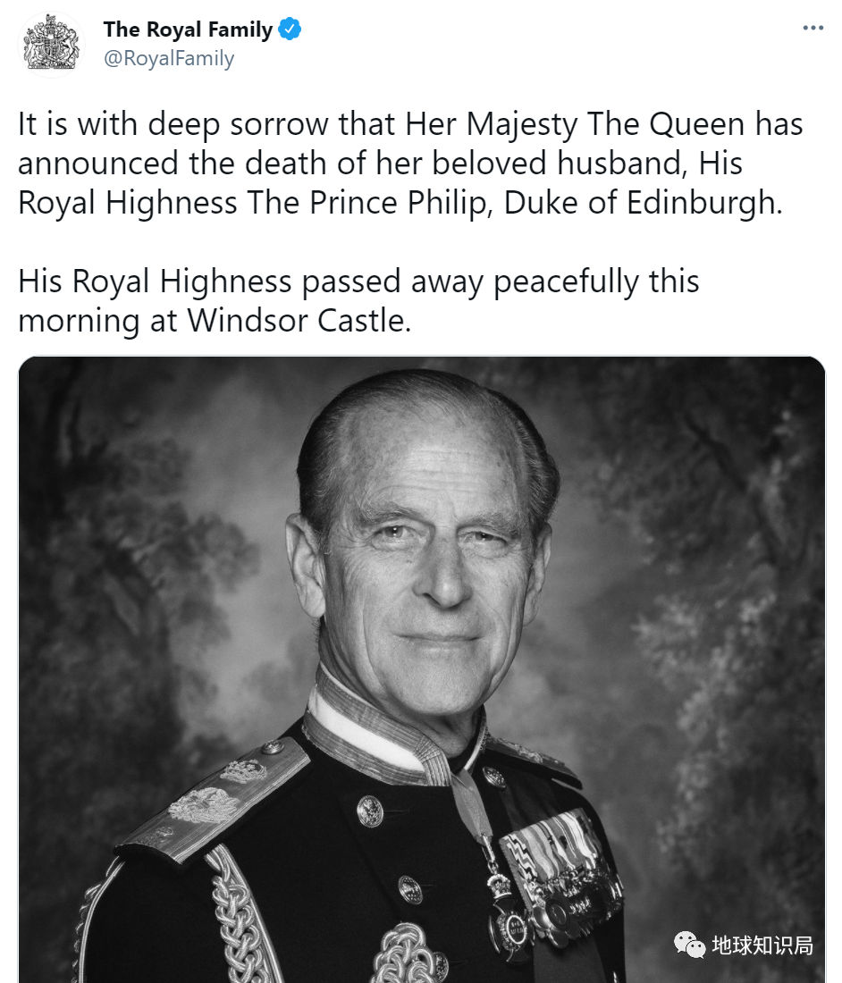 據外媒剛剛的消息,白金漢宮宣佈,當地時間今天早上,英國女王伊麗莎白二世的丈夫菲利普親王在温莎城堡安詳地去世了,享年99歲。