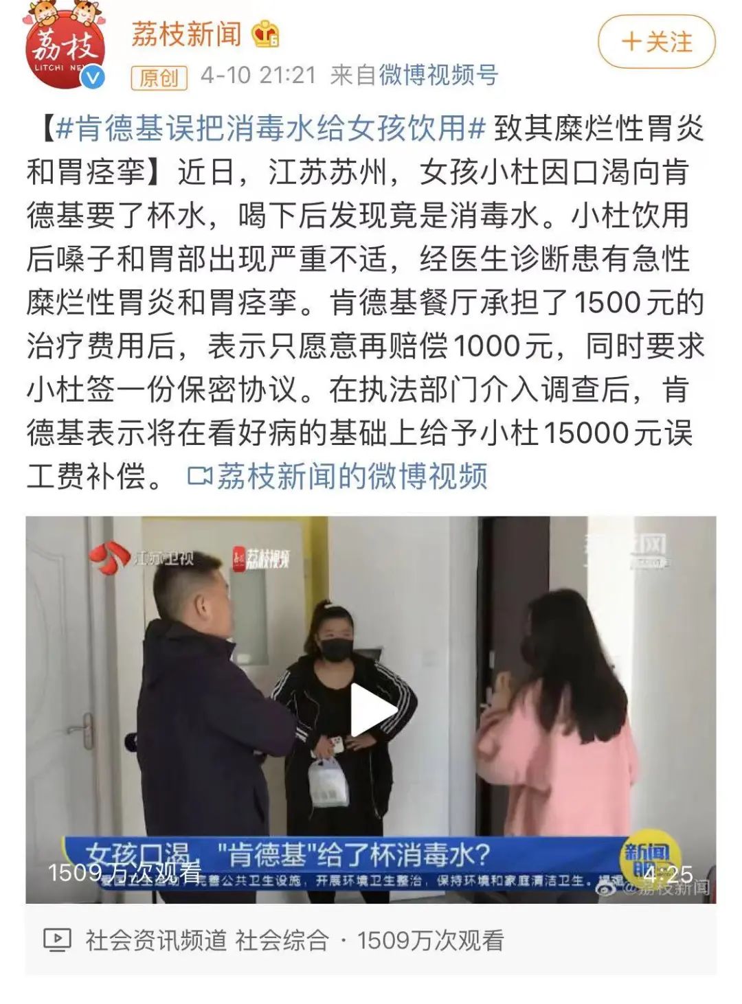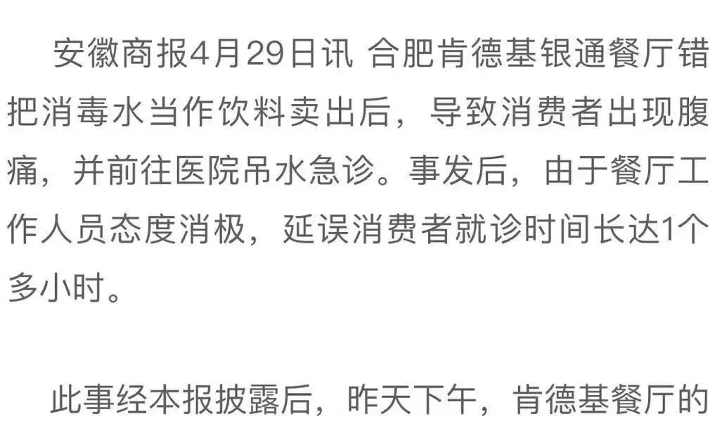 肯德基錯把消毒水給顧客飲用,索賠卻被要求籤保密協議…_風聞