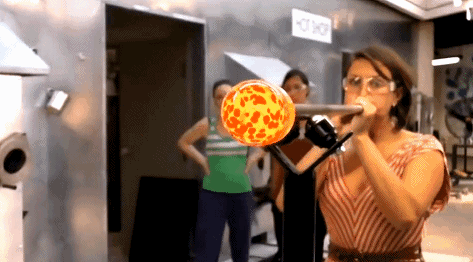 通過玩具內的裝置,孩子們可把玻璃原料燒製軟化,吹成各種自己想要的形狀,類似這樣。