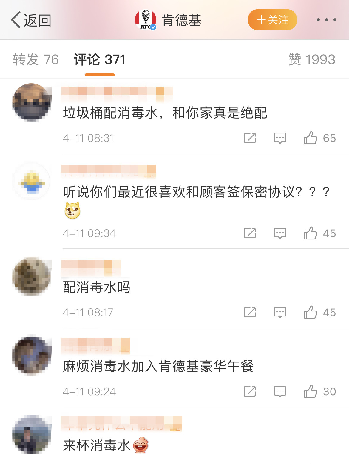 截至發稿前,@肯德基 和百勝(中國)投資有限公司均未就對此事作出任何官方回應,而@肯德基 今天(11日)一條最新產品推薦的博文評論區下,已經被“求説法”的網友們攻陷。