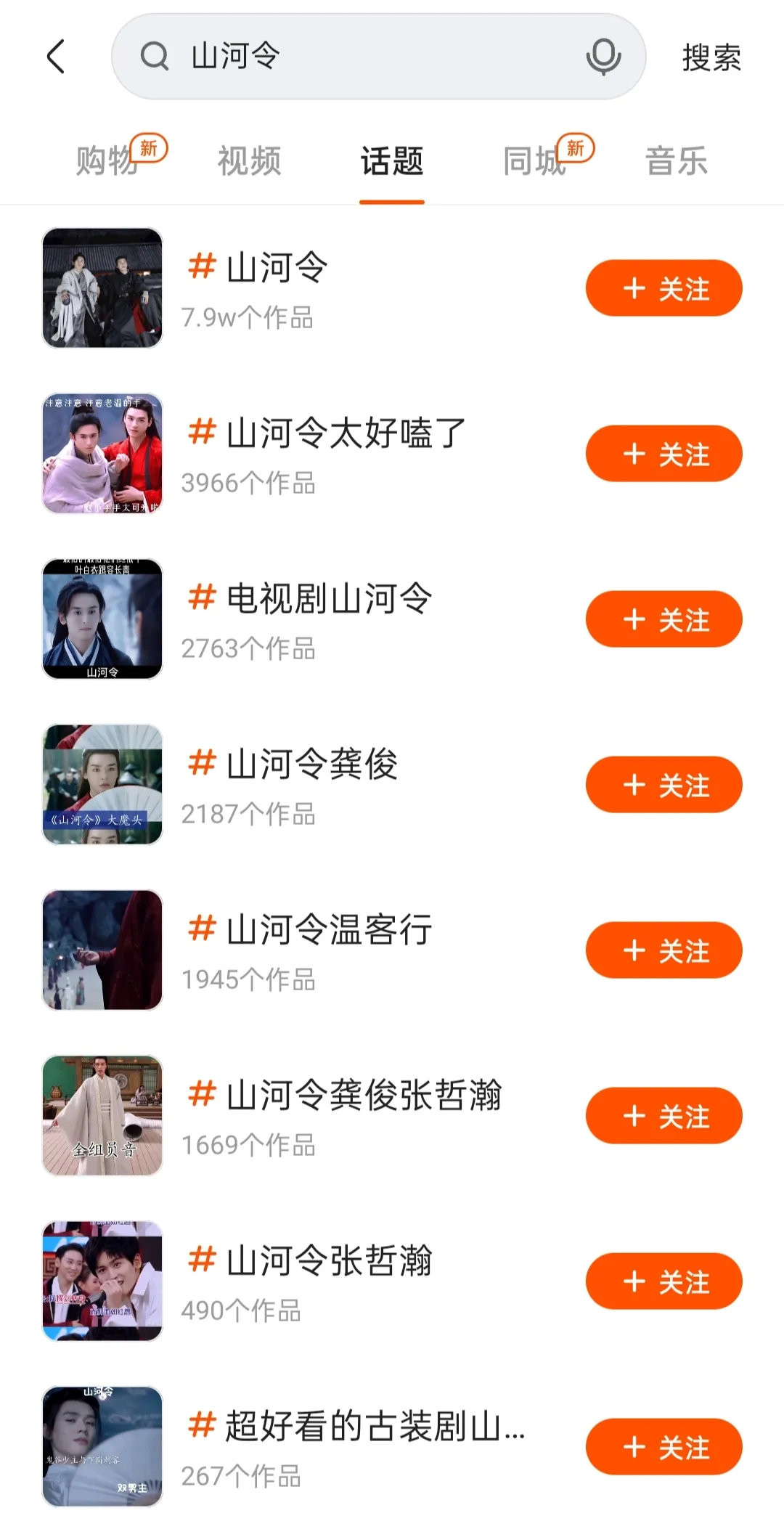 在抖音搜索《司藤》《山河令》等熱播劇,其話題合集播放量都超過數十億,話題#我在抖音看綜藝#總播放量更是高達363.4億。