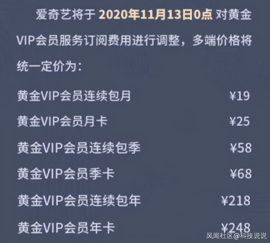 同為國內視頻頭部平台的愛奇藝也出於成本以及盈利的角度提高了會員的費用。