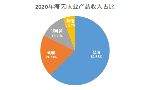 從分類產品收入來看,醬油和蠔油仍是海天味業的營收主力,收入分別佔比62.58%和19.73%。其中海天醬油產銷量連續二十四年穩居全國第一,連續三年年均增長14.5%。蠔油和調味醬連續三年年均增長分別為21.3%和8.4%,也均處於行業領先地位。