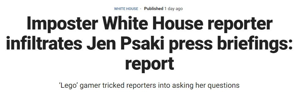 離譜的是,最近幾周,這位“假記者”通過參加發佈會的“真記者”已成功向白宮新聞秘書珍·普薩基提問了四次。