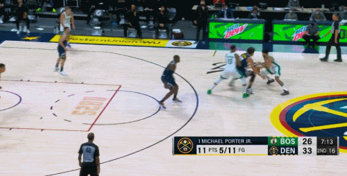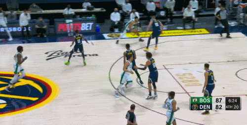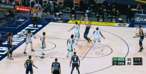 凱爾特人又贏下了一場不可思議的比賽,他們在第三節結束前2分鐘時仍然落後14分,形勢不妙。但自那之後,綠軍打出40-8的進攻高潮,包括一波31-3,一舉終結了掘金的8連勝。