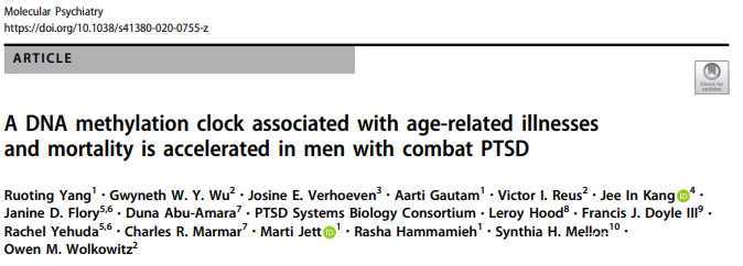 Yang, R., Wu, G.W.Y., Verhoeven, J.E. et al. A DNA methylation clock associated with age-related illnesses and mortality is accelerated in men with combat PTSD. Mol Psychiatry (2020). https://doi.org/10.1038/s41380-020-0755-z