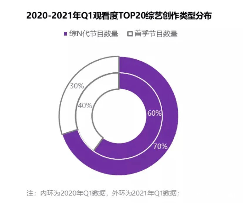 在藝恩數據和雲合數據統計的Q1電視綜藝TOP20之中,毒眸發現“綜N代”均有14部,佔據大盤的70%,甚至有9部節目在四季以上,IP生命週期長且穩固。