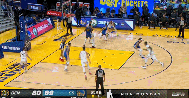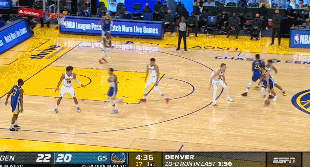 這時掘金還沒翻過來,他們就只剩最後一個機會了——第四節初庫裏休息的時候。
