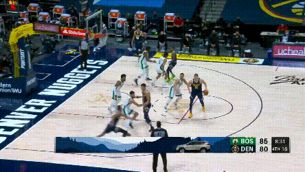 按説這樣的回合問題不大,掘金是最知道如何處理主將被夾擊的球隊,在掘金的最強陣容裏,底角出現的射手也不會是多齊爾。但掘金還是有一個隱患,阿隆·戈登在掘金的其他方面表現可圈可點,28.6%的三分命中率卻不夠好看,中鋒對位戈登,放掉戈登後再去支援約老師的低位,這可能在季後賽的某些時段裏再次出現,這種對位會比正常對位,更難用空切來解決。